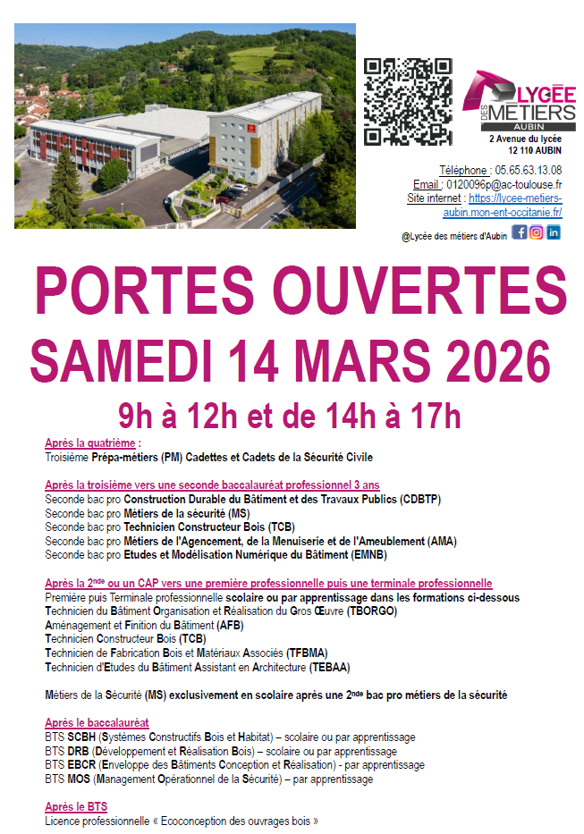 Mini stages au Lycée des Métiers du Bâtiment d'Aubin & Portes Ouvertes